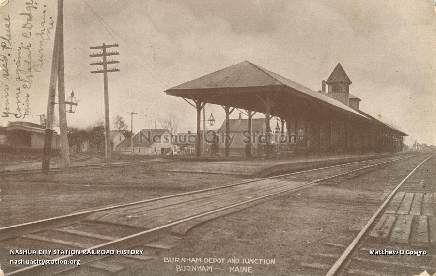 Postcard Burnham Depot and Junction, Burnham, Maine Railroad History